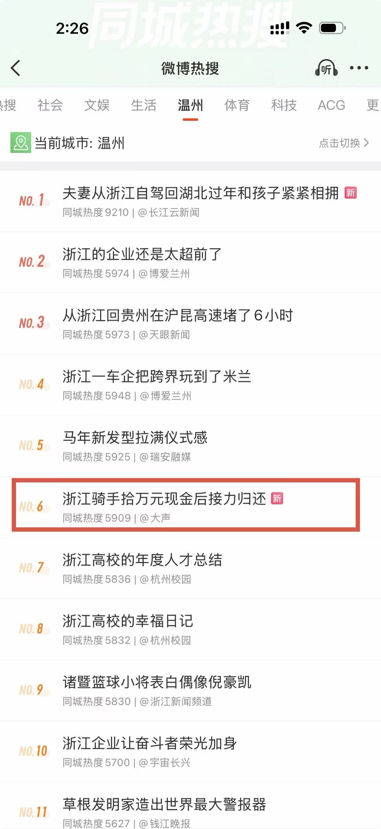 浙江骑手拾万元现金后接力归还断